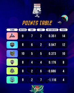 টেবিলের শীর্ষে রাজশাহী ওয়ারিয়র্স