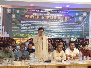 আজ নগরীর ২নং গেইটস্থ বেলপেপার রেস্টুরেন্টে জাতীয়তাবাদী ইয়াং ইঞ্জিনিয়ার্স ফোরাম আয়োজিত বিএনপির চেয়ারপার্সন সাবেক তিনবারের প্রধানমন্ত্রী মরহুমা বেগম খালেদা জিয়া এবং সাবেক মন্ত্রী মরহুম আব্দুল্লাহ আল নোমানের স্মরণে দোয়া ও ইফতার মাহফিল সংগঠনের আহ্বায়ক ইঞ্জিনিয়ার শাহনেওয়াজ চৌধুরী এর সভাপতিত্বে অনুষ্ঠিত হয় এবং সংগঠনের যুগ্ম আহ্বায়ক ইঞ্জিনিয়ার আরিফুল কবির চৌধুরী ও ইঞ্জিনিয়ার ফখরুল ইসলাম পাটোয়ারীর যৌথভাবে সঞ্চালনা করেন। এতে প্রধান অতিথি হিসেবে বক্তব্য রাখেন বিএনপির জাতীয় নির্বাহী কমিটির শ্রম বিষয়ক সম্পাদক এম নাজিম উদ্দীন। প্রধান বক্তা ছিলেন অ্যাসোসিয়েশন অব ইঞ্জিনিয়ার্স বাংলাদেশ (এ্যাব) চট্টগ্রাম এর সভাপতি ইঞ্জিনিয়ার জানে আলম সেলিম।
