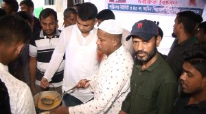 আলোচনা সভা শেষে অসহায় মানুষদের মাঝে খাবার বিতরণ করেন যুবদলের নেতৃবৃন্দ।