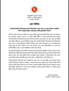 সোমবার (২৮ জুলাই) প্রাথমিক ও গণশিক্ষা মন্ত্রণালয়ের জ্যেষ্ঠ তথ্য কর্মকর্তা আব্দুল্লাহ শিবলী সাদিকের পাঠানো এক সংবাদ বিজ্ঞপ্তিতে এ তথ্য জানানো হয়।