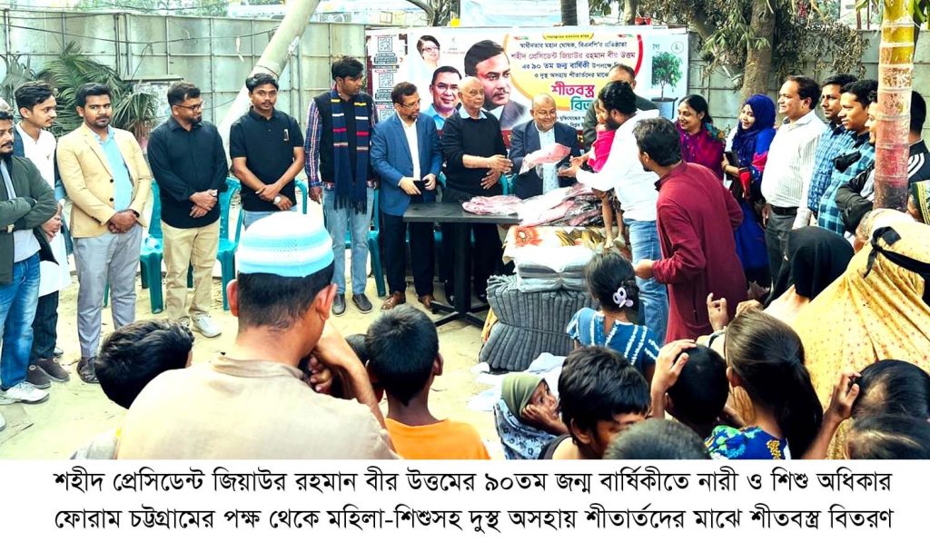 শহীদ প্রেসিডেন্ট জিয়াউর রহমান বীর উত্তমের ৯০তম জন্ম বার্ষিকীতে নারী ও শিশু অধিকার ফোরাম চট্টগ্রামের পক্ষ থেকে মহিলা-শিশুসহ দুস্থ অসহায় শীতার্তদের