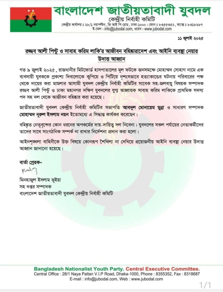 ব্যবসায়ীকে পাথর মেরে হত্যা, ২ নেতাকে আজীবন বহিষ্কার